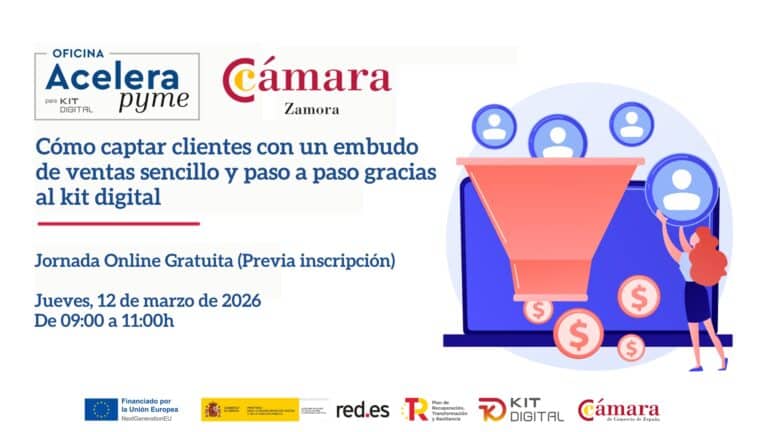 10 de marzo | 09:00 - 11:00Jornada Online Gratuita “Cómo captar clientes con un embudo de ventas sencillo y paso a paso gracias al kit digital“