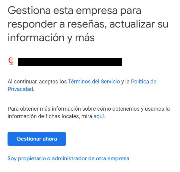 - Sin respuesta, Google puede permitirte reclamar la ficha y pasar a verificación. Detalles: